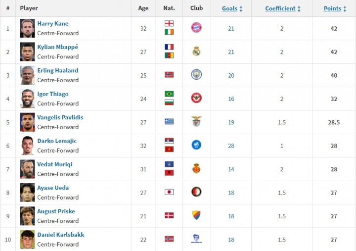 开云体育-欧洲金靴排名:姆巴佩本轮双响追平头名凯恩,哈兰德一球之差紧咬